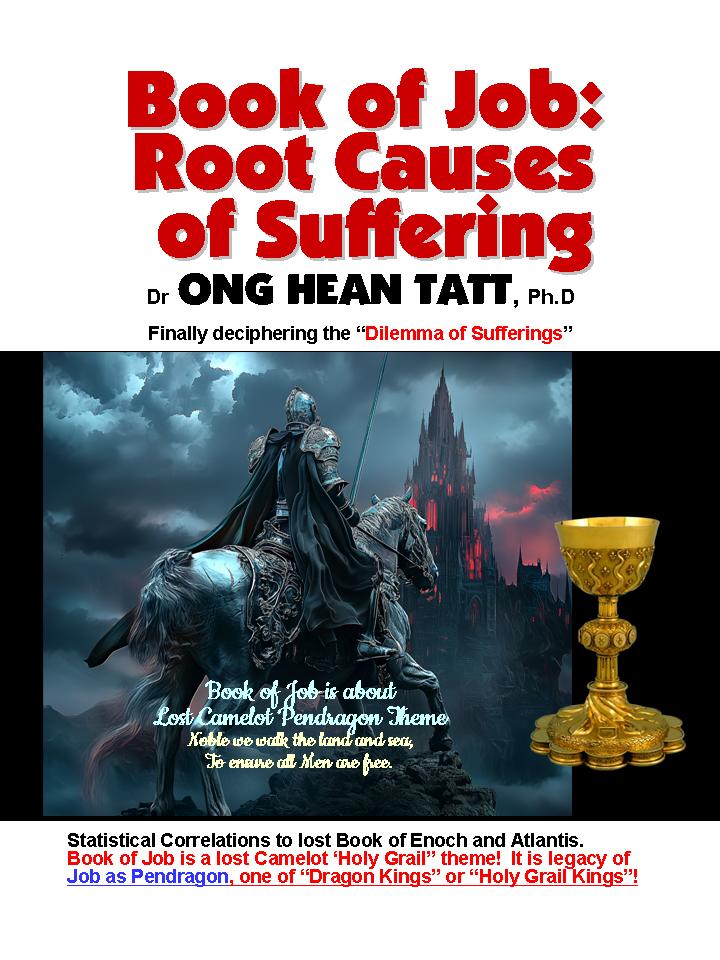 The first part of the solution to the "Dilemma of Sufferings" is the understanding that the root causes of sufferings are the wayward kings and leaders whose greed and avarice oppress the vast innocent people down the ages. Thus, it is natural that these wayward kings and leaders have to be removed from the leadership. Only, who will replace them as the new leaders? Identify the real root causes and do not just blame God or Sartan. God's enigmatic answer in the ending of the Book of Job is: "Can you tame the behemoth and the leviathan?". God spoke such in the closing passages in Chapters 40 and 41. Not understanding the passages many have naively written off these monsters as symbolical. But these animals were dinosaurs now extinct. Several passages in the Book of Job indicate need to understand the workings of Nature and physical geography. The understanding of Nature includes the question of have you understand how to control the behemoth and leviathan. These behemoth and leviathan were the emblem of the king, the legendary Pendragon who rode the dragon-dinosaur! The Truth is that to be righteous is not enough to make you a leader! To be a leader you have to be wise, to understand the workings of Nature and human behaviour. (Dr Ong Hean-Tatt 2025. Pendragon Holy Grail of Book of Job. GUI Management Centre, Malaysia), Job had taken many things for granted. He was hard working and talented enough to raise livestock riches. But he had not enough wisdom to control the marauding Sabeans and Chaldeans. Although God did not cause Job's sufferings, Job learnt through the sufferings and discussions with his friends that he had to be the active wise king, that legend known as the "Pendragon".