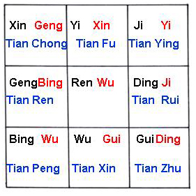 Also at the middle palace Yin Dun Yin officer Xia Zhi upper Yuan Jia Si day forming at midnight. Jia Zi initial starting 9 palace. Lasting 5 shi (10 hours) Wu Chen at middle chamber. Yang officer starting on palace. Yang officer starting one palace. Lasting 5 shi (10 hours) Wu Chen also at middle palace. That is why said it is in combination.