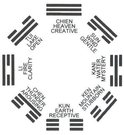 It is not difficult to understand what the Bagua is. In the Northern Hemisphere, during the summer solstice, the solar radiation will be at its height and this stage is symbolised by the trigram Qian for Heaven, with its three solid lines. As the season progresses, the solar radiation will be less, hence, the appearance of a single broken line and then two broken lines before turning into the three broken lines trigram of Kun for Earth. Kun is the stage of the winter solstice. As summer approaches, there will be an addition of one solid line and then two solid line before turning into the three solid lines of Qian.