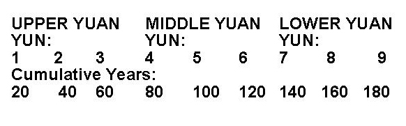 The 9 numbers equate with the standard 180 years cycle of 3 Yuans, each Yuan divided into 3 Yuns, each Yun of 20 years, vis. Table 1. 180 Years Theme of Three Yuans, 9 Yuns